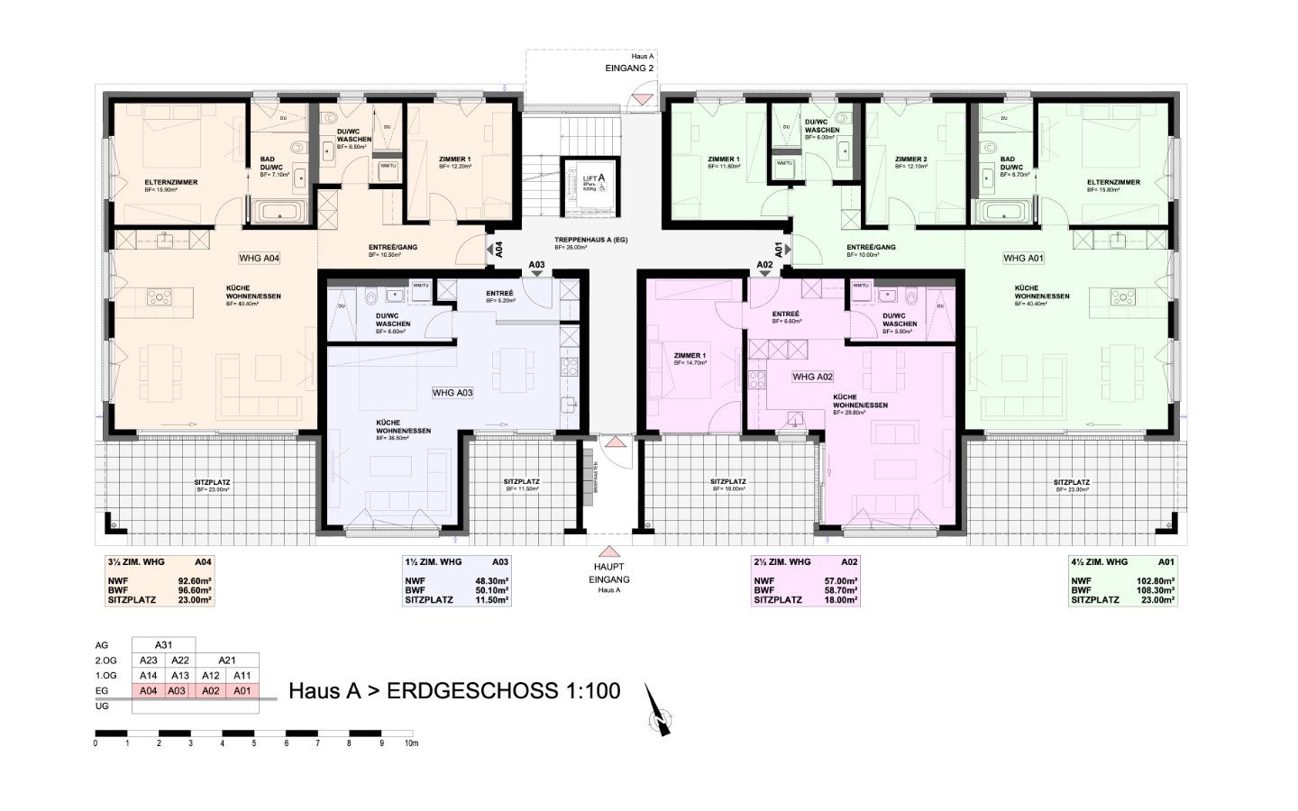 | EG - A04 | 3 ½-Zimmerwohnung | 92.9 | 96.6 | vermietet | ||||