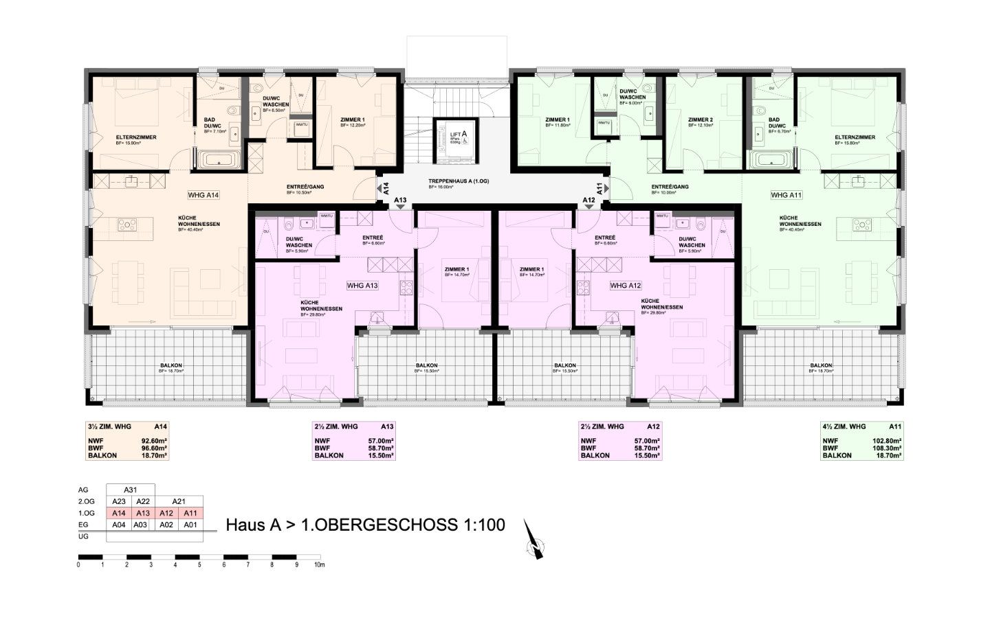 | 1.OG - A14 | 3 ½-Zimmerwohnung | 92.9 | 96.6 | vermietet | ||||