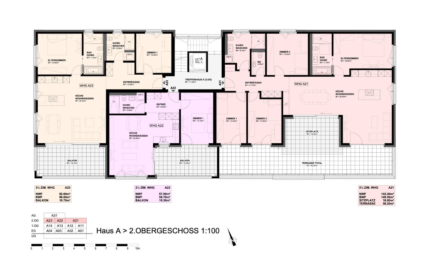 | 2.OG - A23 | 3 ½-Zimmerwohnung | 92.9 | 96.6 | vermietet | ||||