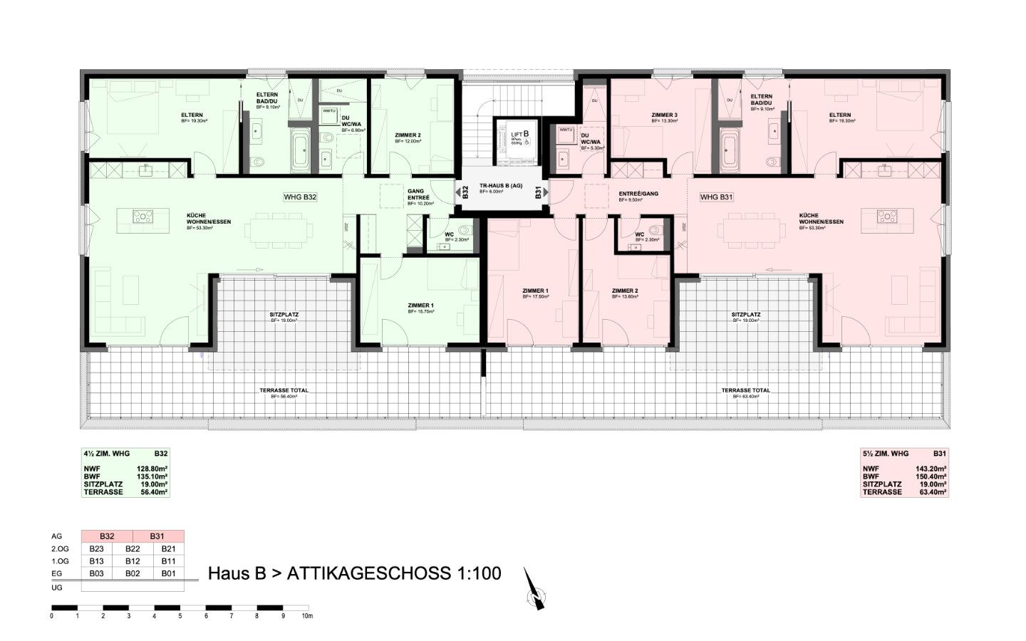 | Attika - B31 | 5 ½-Zimmerwohnung | 143.3 | 150.4 | vermietet | ||||