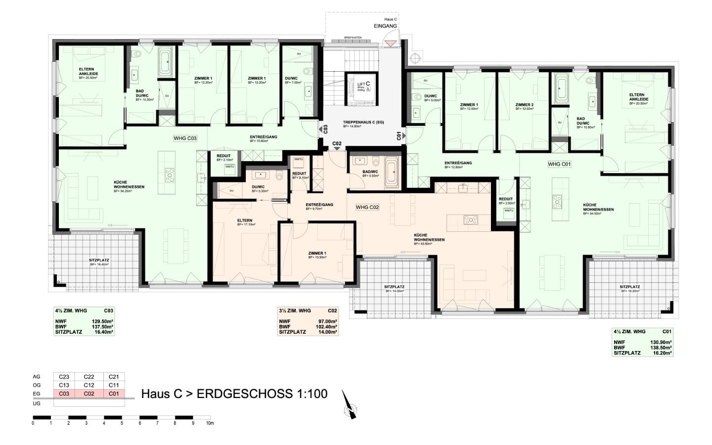 | EG - C01 | 4 ½-Zimmerwohnung | 130.9 | 138.5 | vermietet | ||||