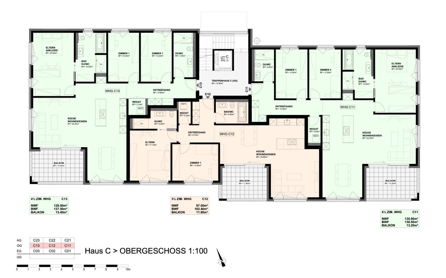 | 1.OG - C13 | 4 ½-Zimmerwohnung | 129.3 | 137.5 | vermietet | ||||