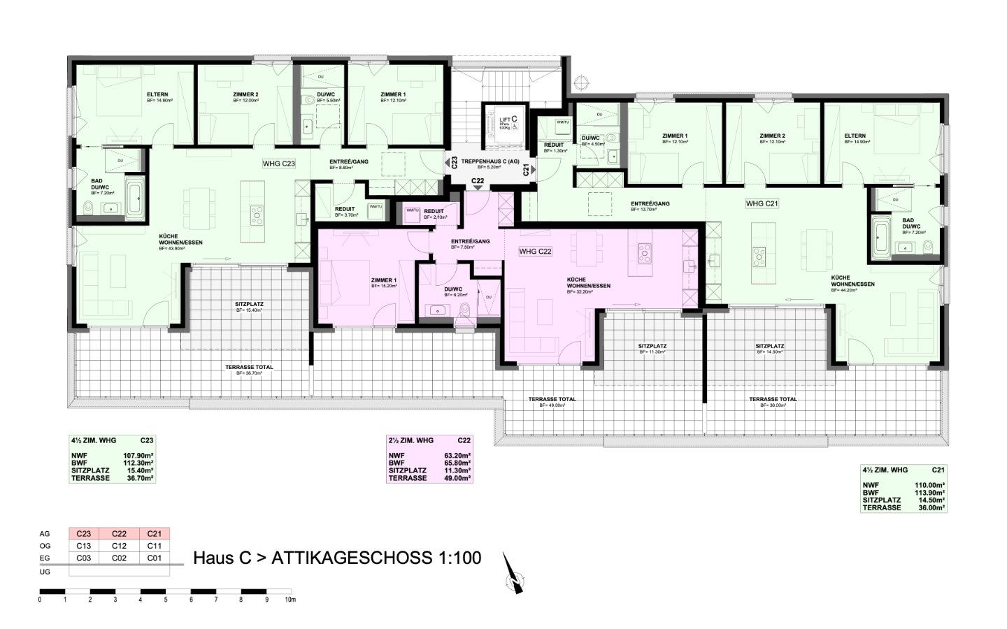 | Attika - C21 | 4 ½-Zimmerwohnung | 108.7 | 113.9 | vermietet | ||||